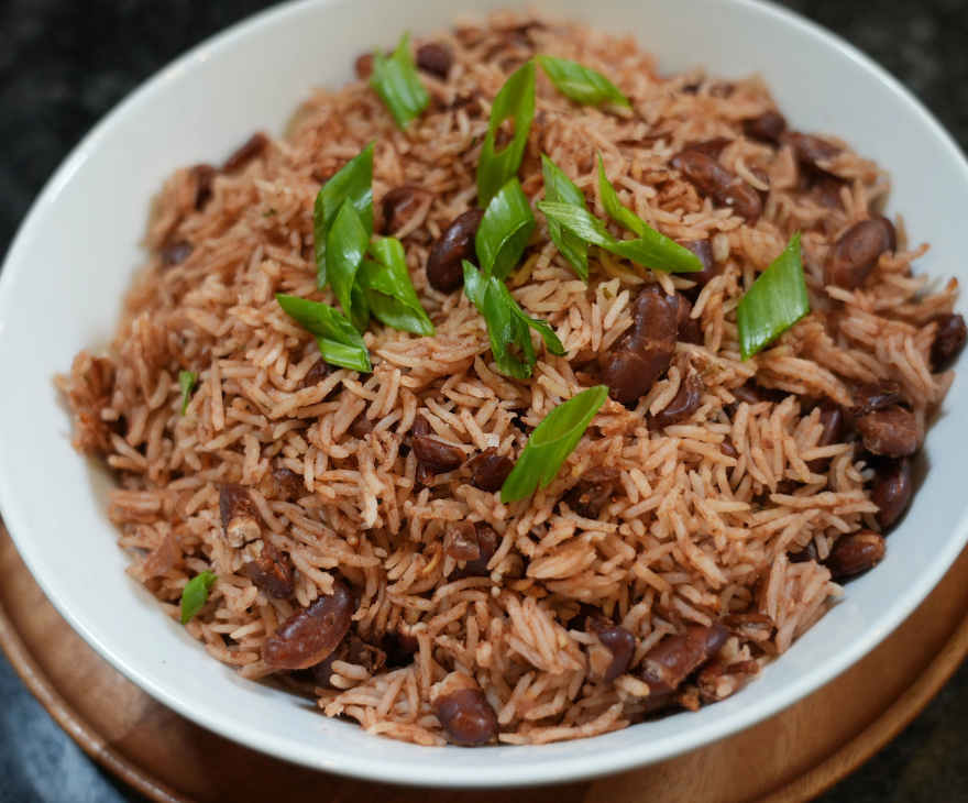 Diri Kole is a traditional Haitian brown rice dish cooked with red kidney beans, herbs, garlic, and a flavorful blend of spices. Simmered in coconut milk and seasoned to perfection, this comforting side pairs beautifully with any meat or seafood entrée, offering a true taste of Haitian home cooking.